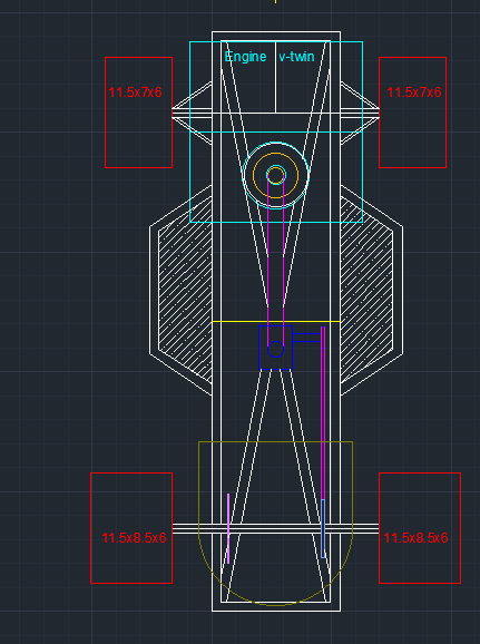 Keeping this in mind I began to lay out the preliminary designs for the chassis that we will be constructing out of the stock mower frame.  The design is subject to change in the near future, but it is good to get ideas down for how it will be constructed so we know what the plan is when it comes time to modify the existing frame.  I wanted to get a simple 2d design of the chassis we can go off of for easy reference when it comes to component placement and dimensions.  We can also easily go in and adjust the drawing with ease if needed.